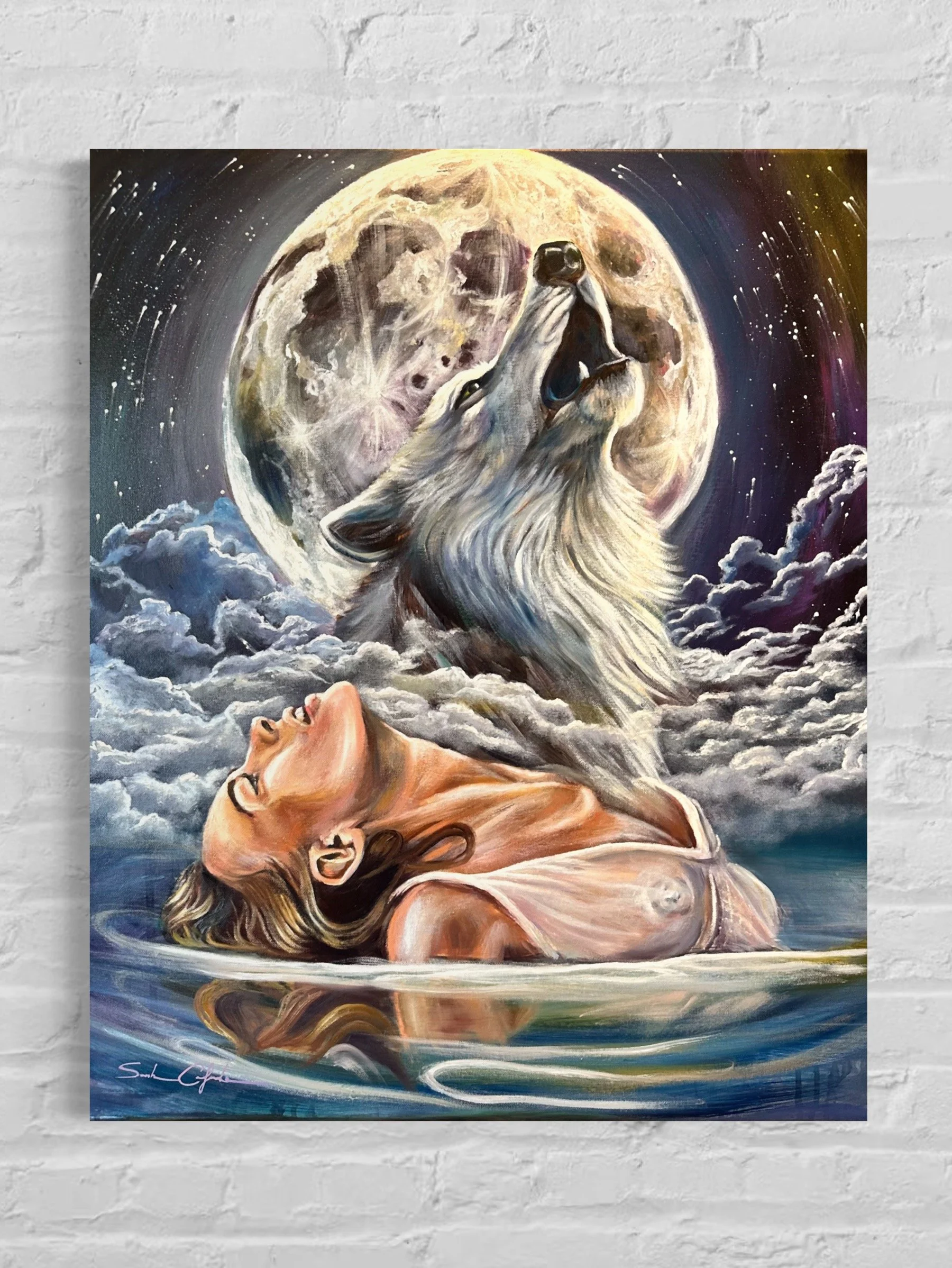 “Lunar Awakening” captures the profound connection between humans and their kindred spirits. The woman symbolizes the strength and resilience within all of us as she emerges from the depths of the water, embracing her inner power. The wolf emphasizes our primal instincts and reminds us of our deep connection to the natural world. I hope this artwork transports you to a realm where the mystical and the mundane coexist harmoniously.